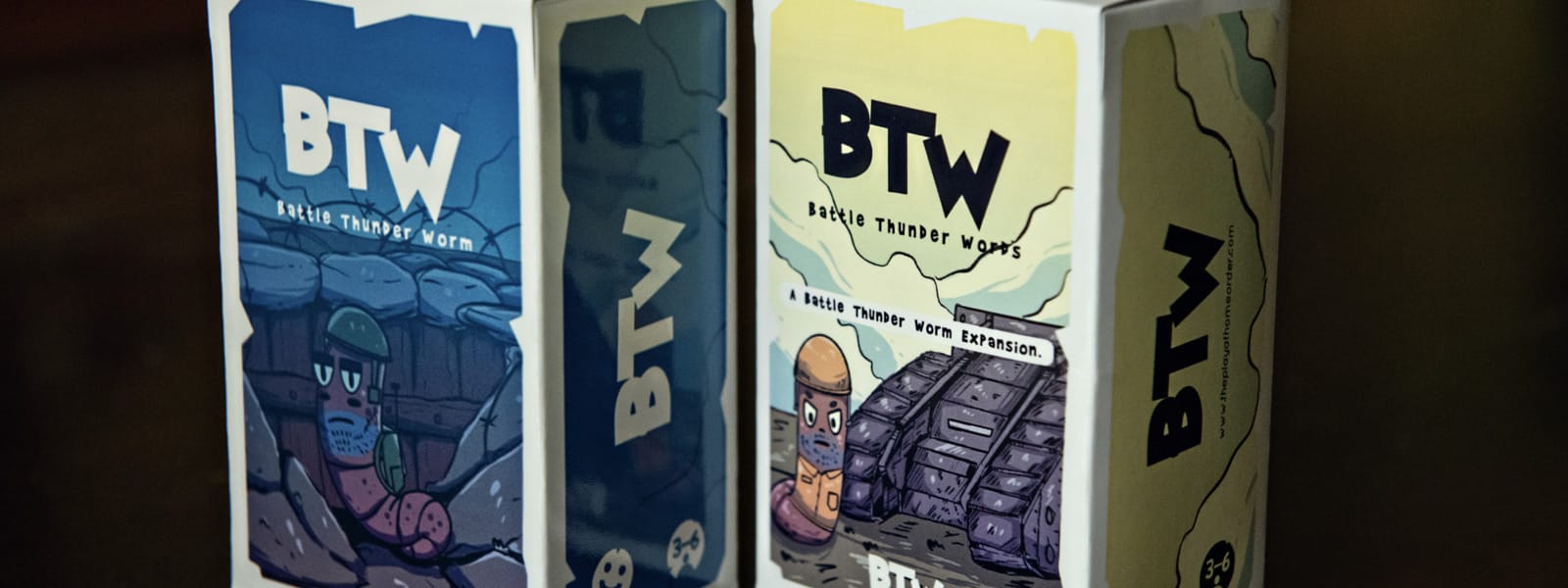 In Battle Thunder Worm, players compete to come up with the best solution for that problem by choosing two words from the cards in their hands. Does this problem call for a Robot Bladder? A Pagan Gnome? Maybe a Mustache Farm would patch things up. Pick two words, and give your teammates your best sales pitch.