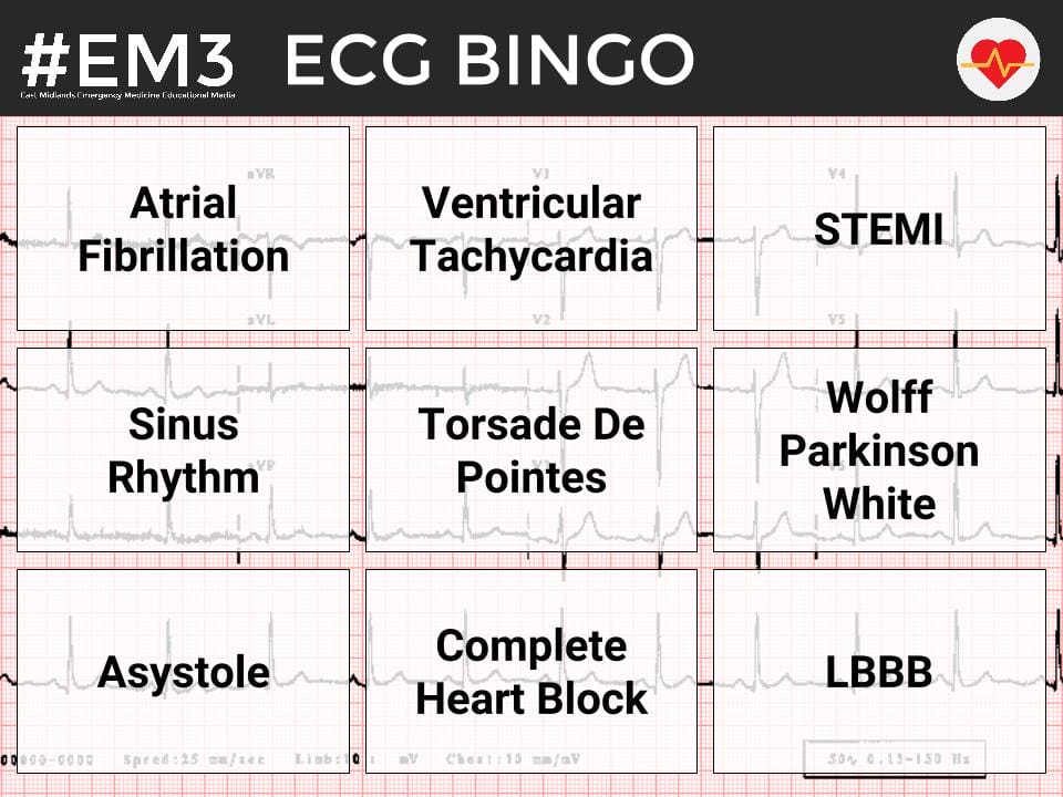 ECG Bingo is a short game for individuals or teams.